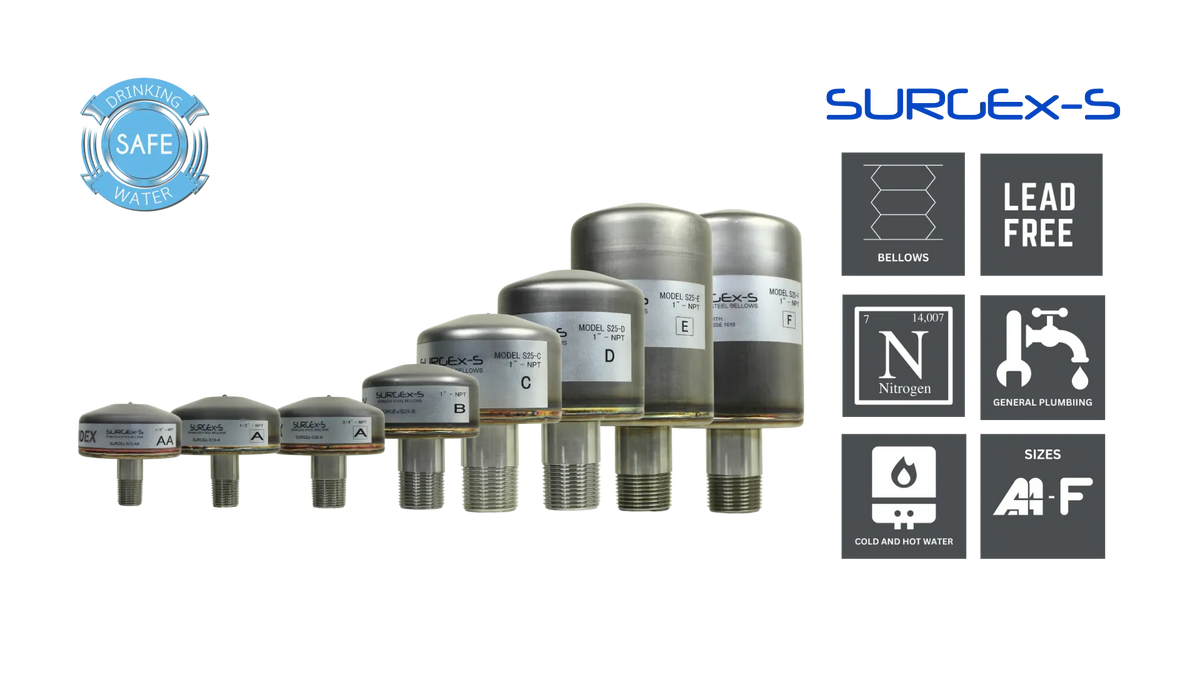 Discover the power of SURGEx-S, All Stainless Steel water hammer arrestors.